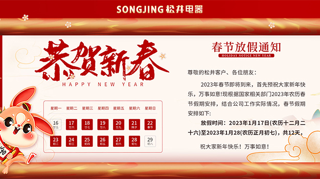 尊敬的松井客戶(hù)、各位朋友: 虎振雄風(fēng)留浩氣,兔迎盛世啟新程。歲杪春臨,華章日新,春節(jié)即將到來(lái),感謝…